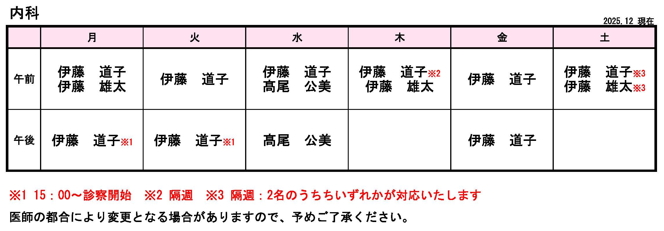 ※水曜は、午前中のみ診察